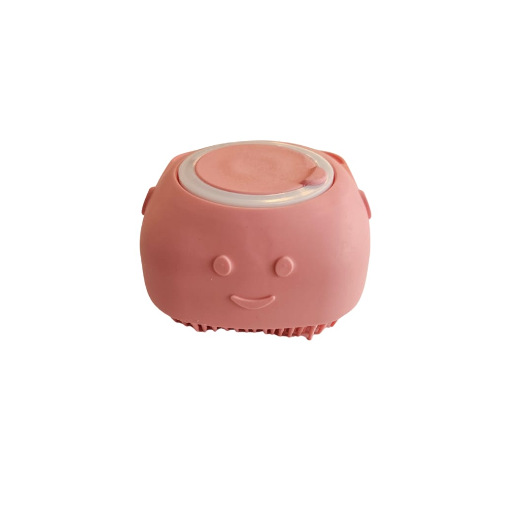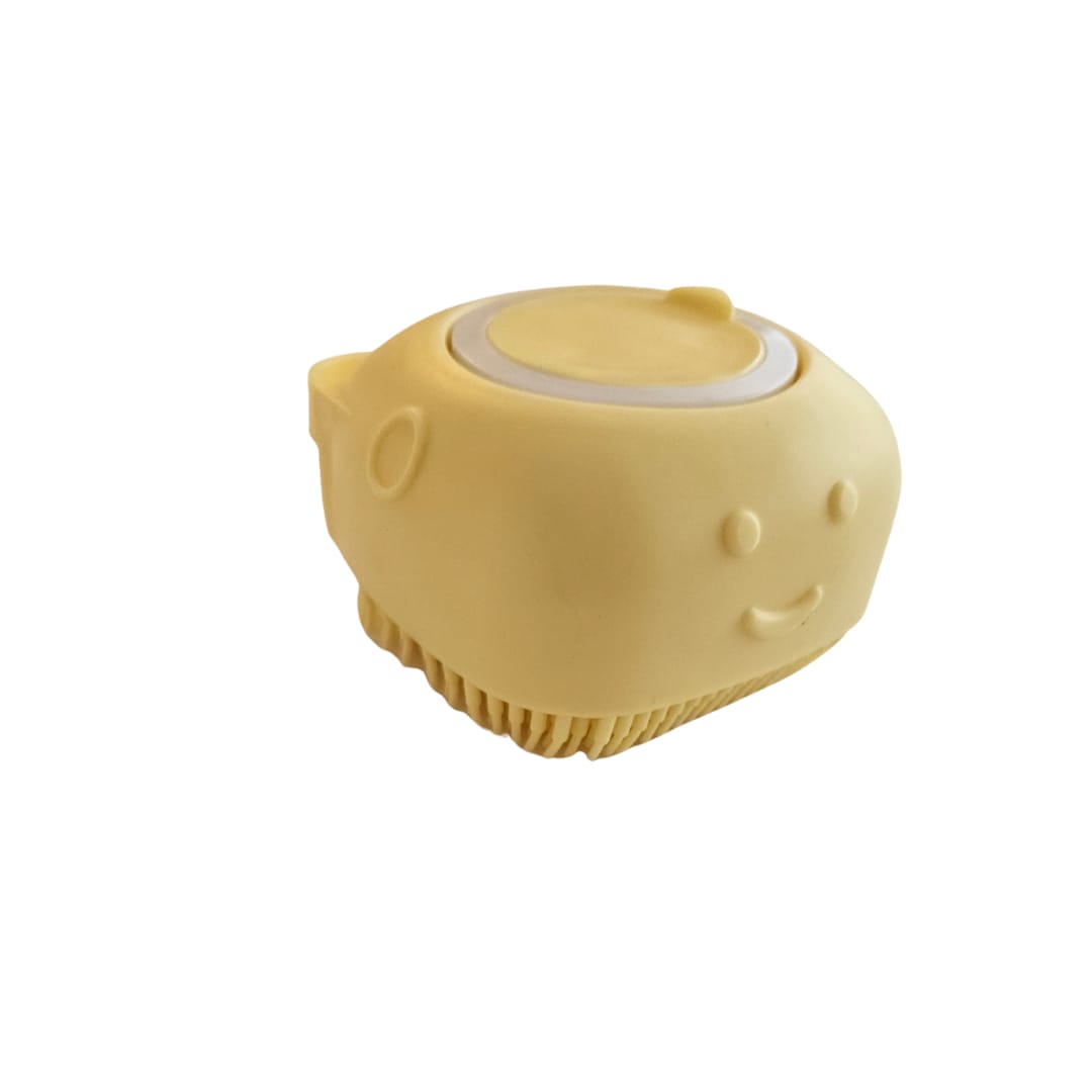 Cepillo suave de silicona para mascotas con dispensador para champú.