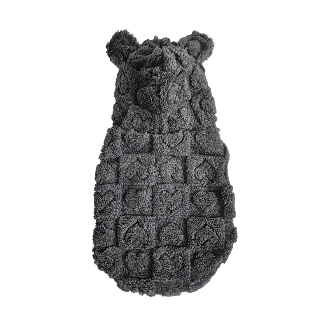 ¡Abrigo y cuidado en una sola prenda! Nuestra polera con capucha está confeccionada en suave peluche para mantener a tu mascota calentita y cómoda durante los días fríos. Su interior forrado en algodón protege la piel sensible de tu perro, evitando irritaciones.